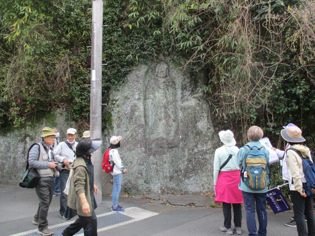 登山道の入口付近では、なんと岩に彫られた摩崖仏を発見!香貫山にこんな見どころがあったとは初めて知り、思わず驚きとともに「参加してよかった」と感じるひとときでした。